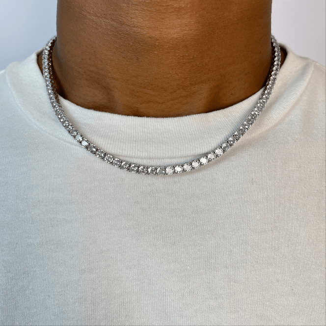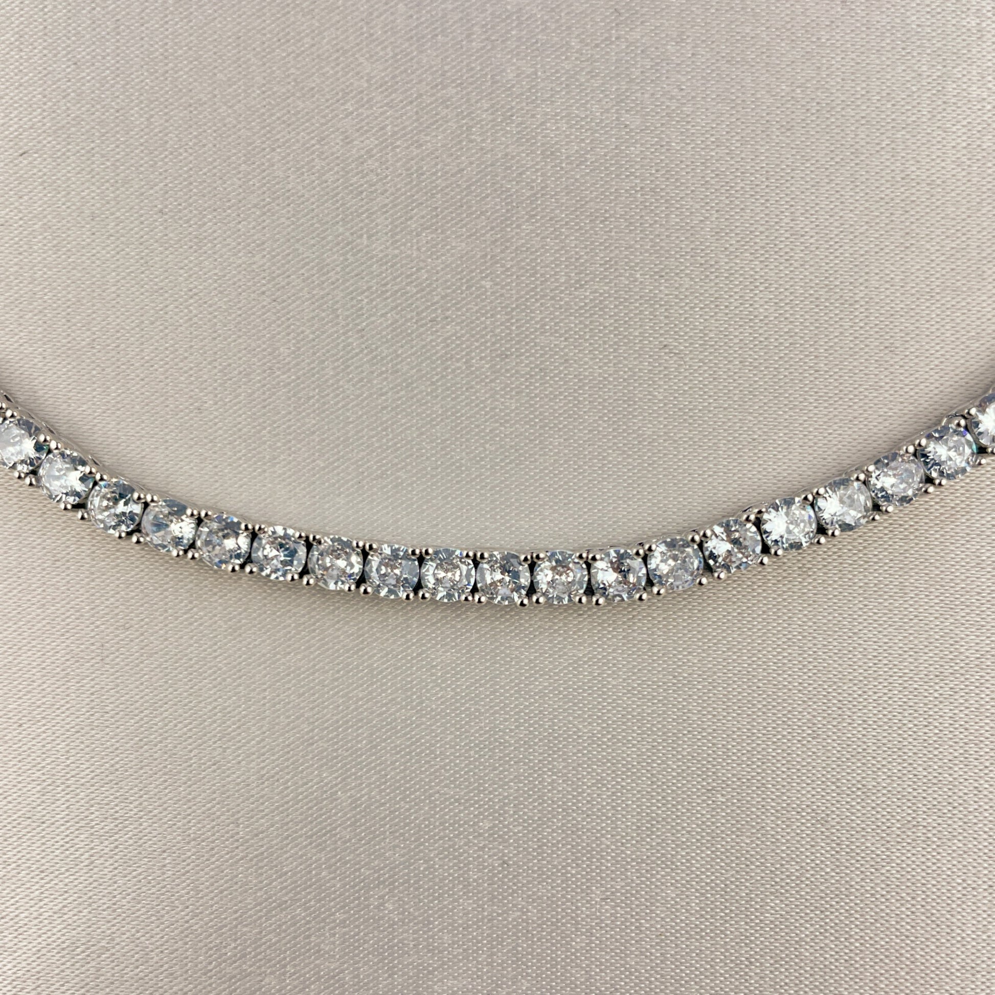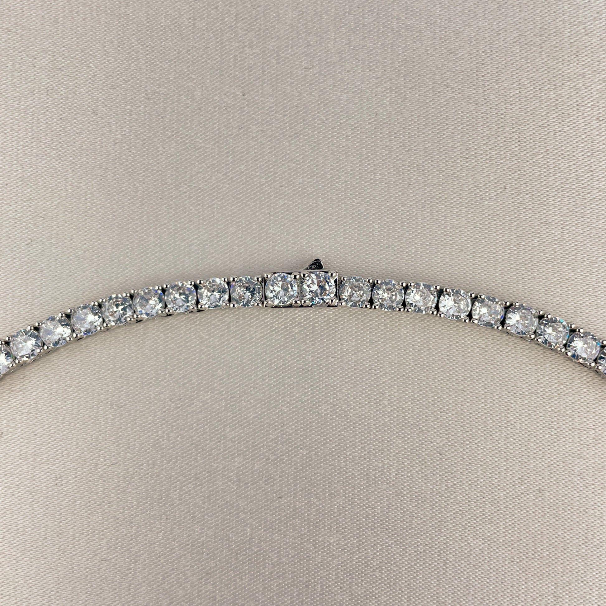 This Tennis Necklace is a timeless piece of jewelry crafted from brass and iced with AAA cubic zirconia. Its fine craftsmanship ensures that it is perfect for formal events such as weddings and proms. Its classic design is sure to make you stand out, while its simple elegance makes it suitable for any occasion. With its luxurious look and feel, this necklace is sure to make a lasting impression.