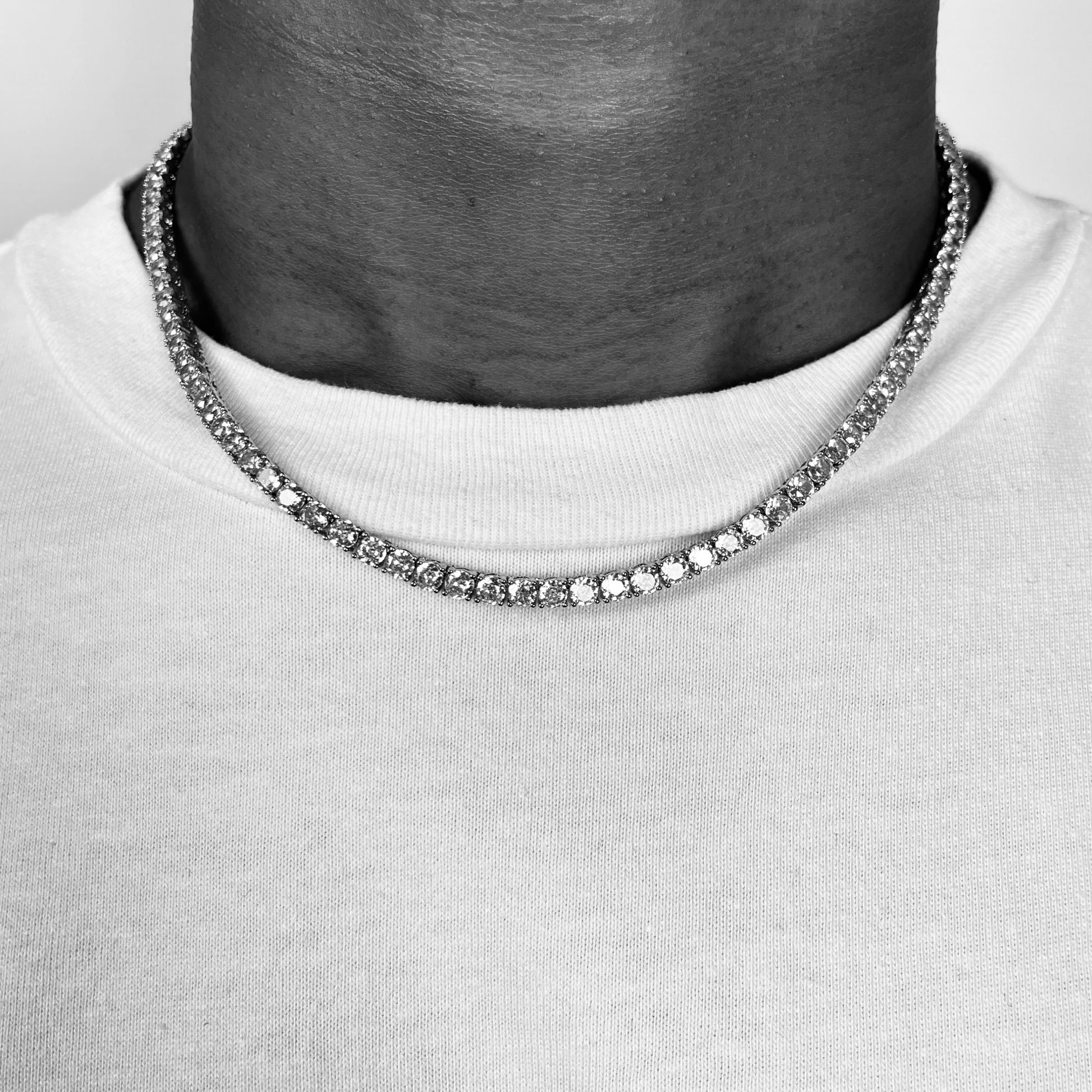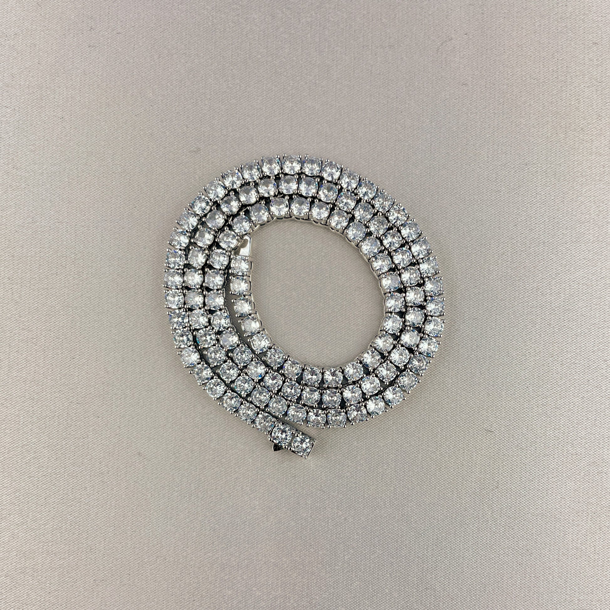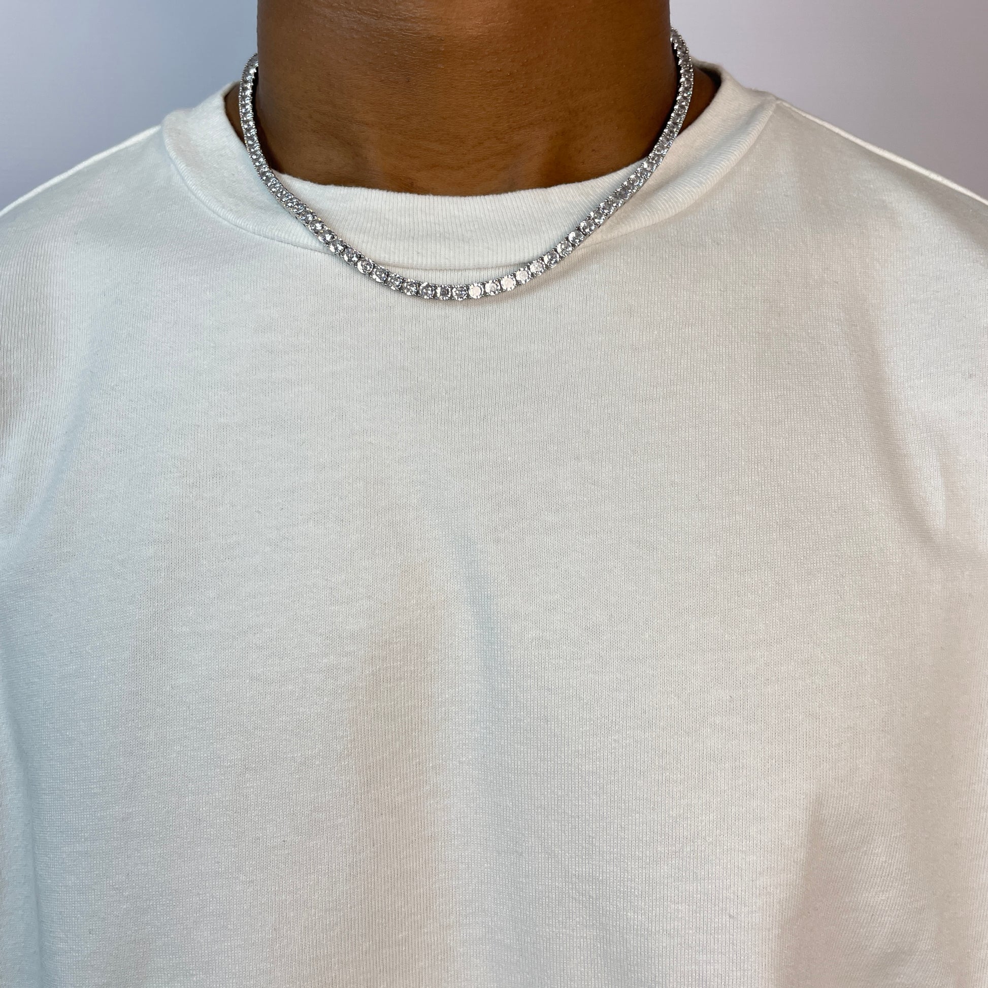 This Tennis Necklace is a timeless piece of jewelry crafted from brass and iced with AAA cubic zirconia. Its fine craftsmanship ensures that it is perfect for formal events such as weddings and proms. Its classic design is sure to make you stand out, while its simple elegance makes it suitable for any occasion. With its luxurious look and feel, this necklace is sure to make a lasting impression.